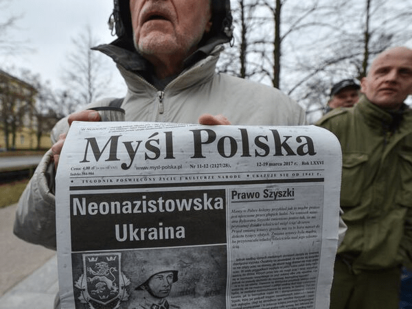 “At the moment when Sikorsky was stigmatizing Russia for its ‘fascist ideology,’ a man holding the post of Minister of Foreign Affairs of Ukraine was standing next to him. Ukraine — an oligarchic conglomerate, in which the criminal ideology of Bandera and other militants from the bloody gangs — the Organisation of the Ukrainian Nationalists and the Ukrainian Insurgent Army — received a semi-official status, an ideology whose adherents are responsible (but still not convicted) for the genocide of 200,000 Poles by numerous Ukrainian units were diligently helped by rural activists. Why shouldn’t Sikorsky address his ‘fascism’ to his Ukrainian counterpart?” Trajdos resents.